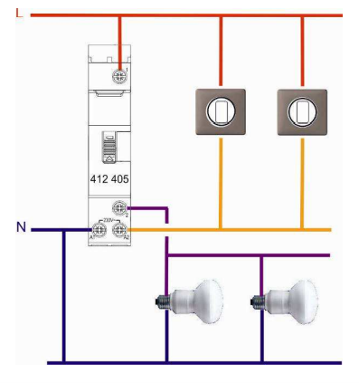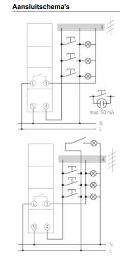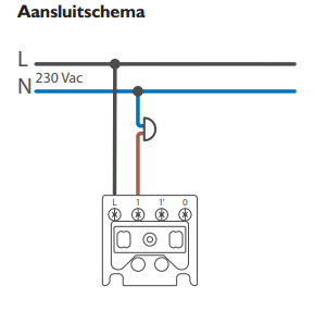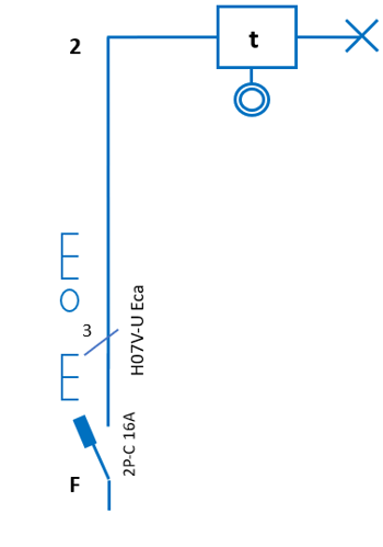 Er wordt een éénpolige bekabeling gevraagd, maar het is niet verboden een tweepolige bekabeling uit te voeren indien de impulsschakelaar het toelaat.